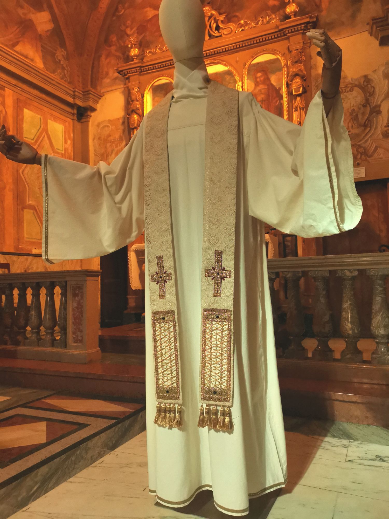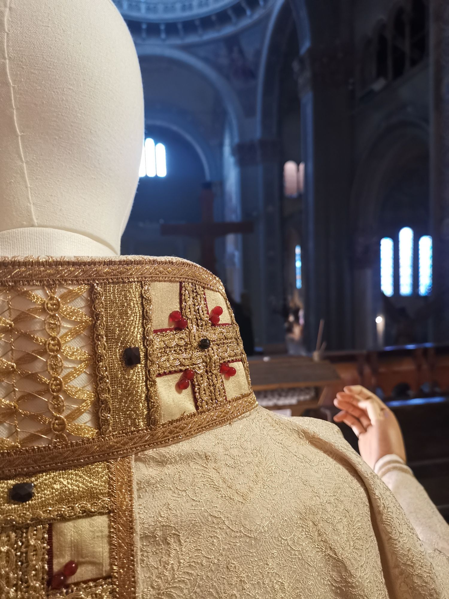 Ogni veste liturgica realizzata da Atelier Nardos è unica. I modelli esposti possono servire come punto di partenza e confronto per altre realizzazioni simili.
