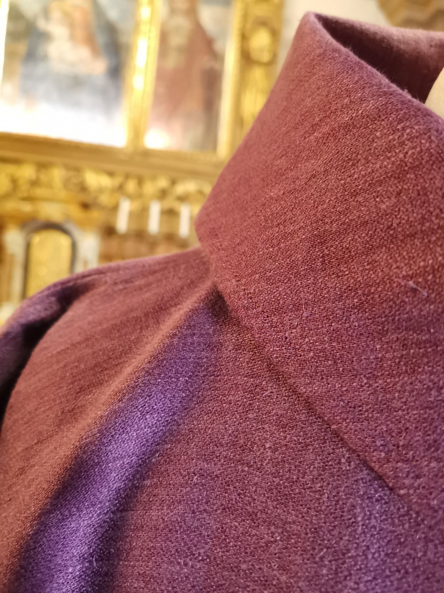 Casula in tessuto misto Lana italiana 60%, 30% Canapa, 10% Lana di Yak, 10% Tencel. Da filiera certificata.