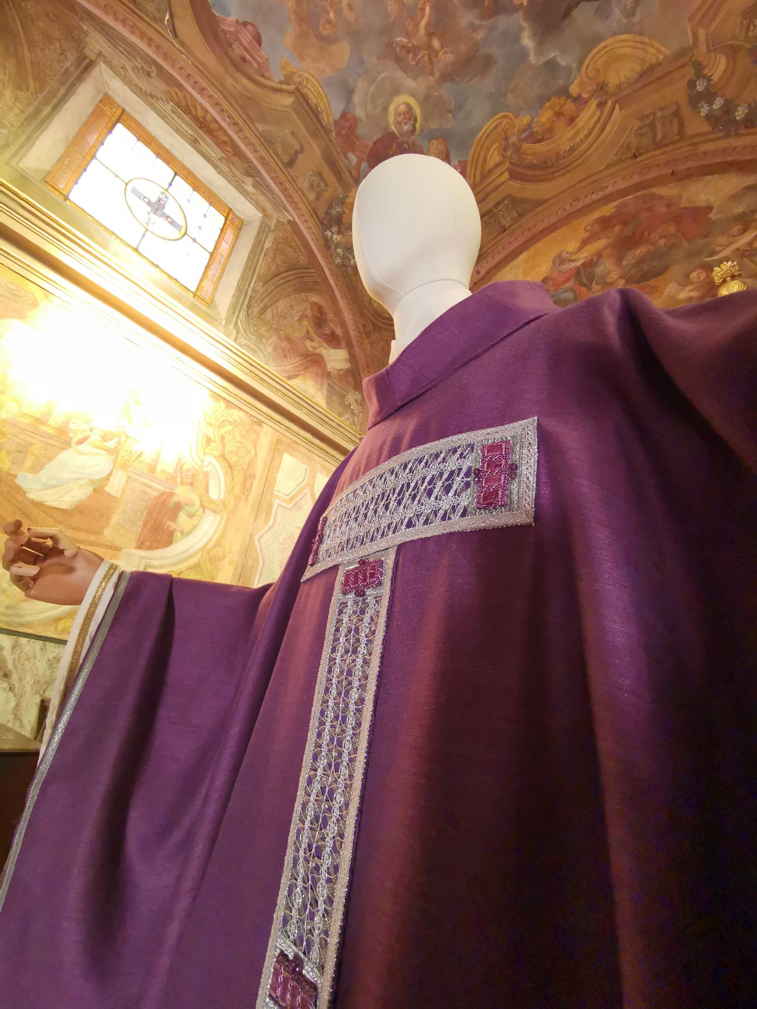 Ogni veste liturgica realizzata da Atelier Nardos è unica. I modelli esposti possono servire come punto di partenza e confronto per altre realizzazioni simili.