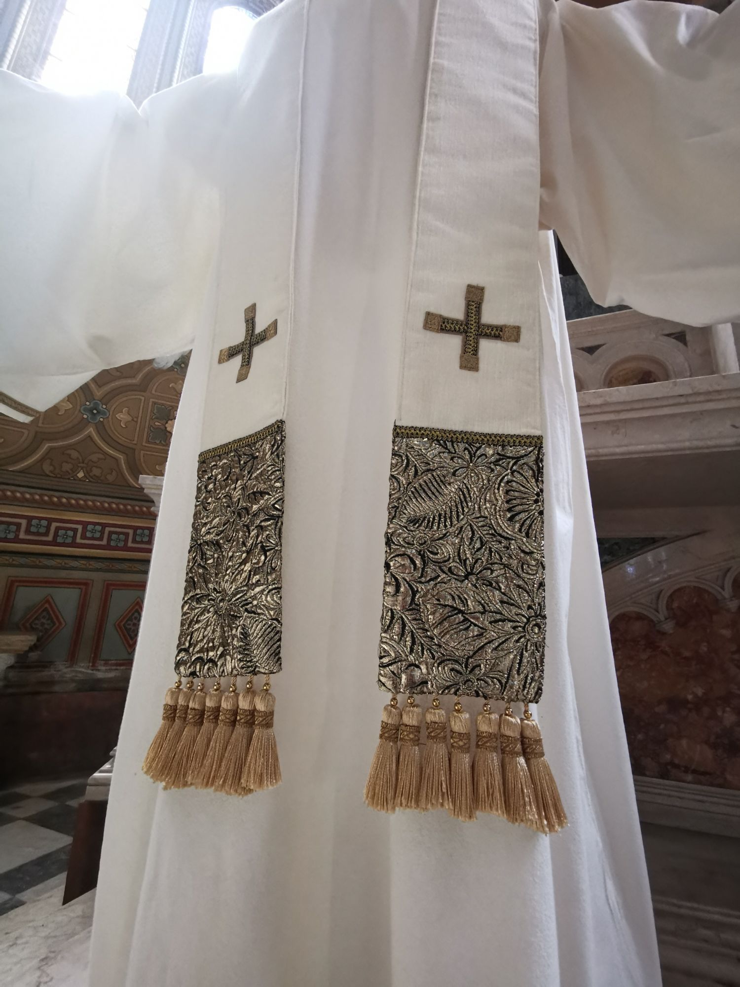 Ogni veste liturgica realizzata da Atelier Nardos è unica. I modelli esposti possono servire come punto di partenza e confronto per altre realizzazioni simili.